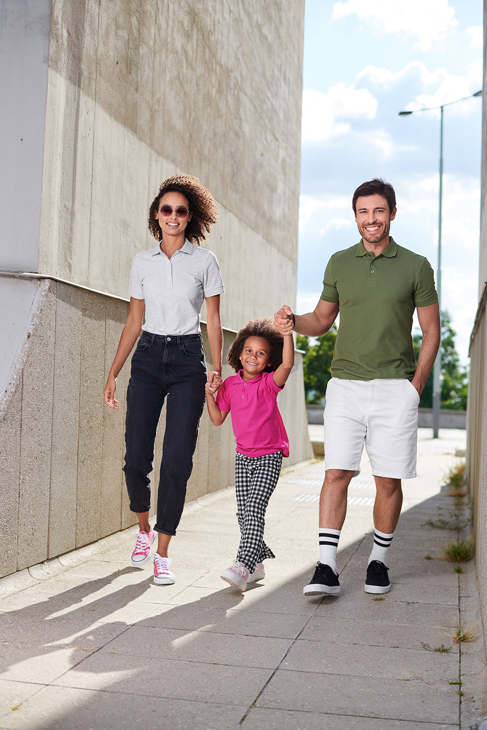 • Material:  Pique, 65 % Baumwolle, 35 % Polyester (Farbe 12 –  85 % Baumwolle, 15 % Viskose))
